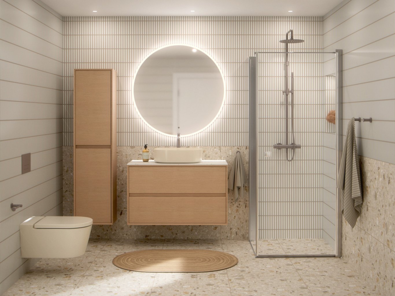 REN er stilen for deg som vil ha kontroll og ro i hverdagen. Et bad der alt har sin plass, og ingenting er overflødig. Her møtes funksjon og estetikk i et lyst, ryddig og gjennomtenkt uttrykk. Denne stilen har fokus på detaljer som skaper orden og overskudd.